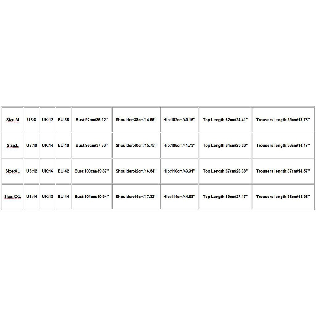 Size US UK EU Bust Shoulder Hip Top Length Trousers length