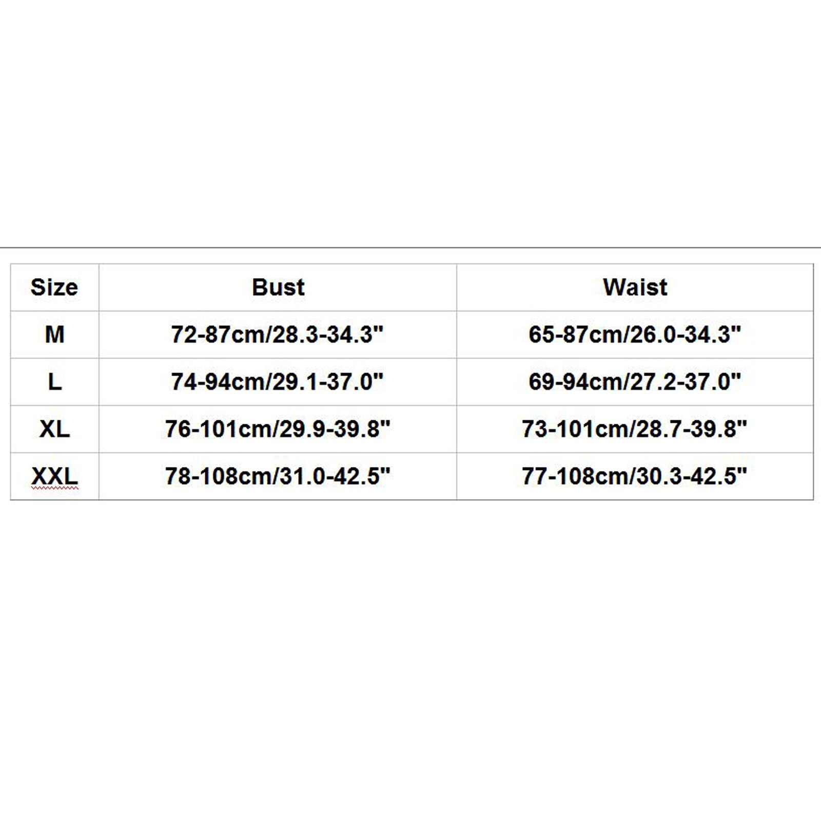 | Size | Bust | Waist |