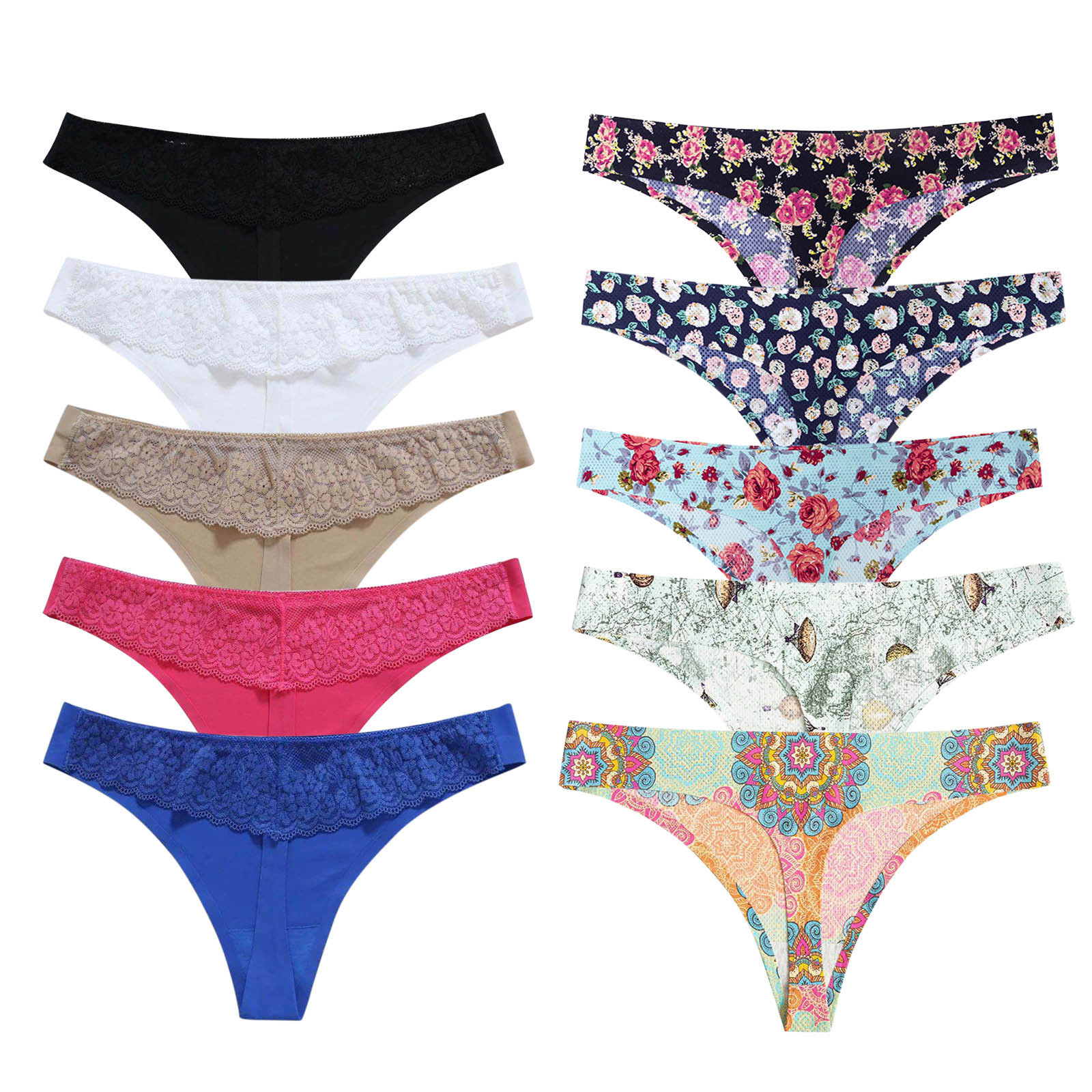 Pack Of 10 Women Solid Color Patchwork Briefs Panties Underwear Knickers Bikini Underpants