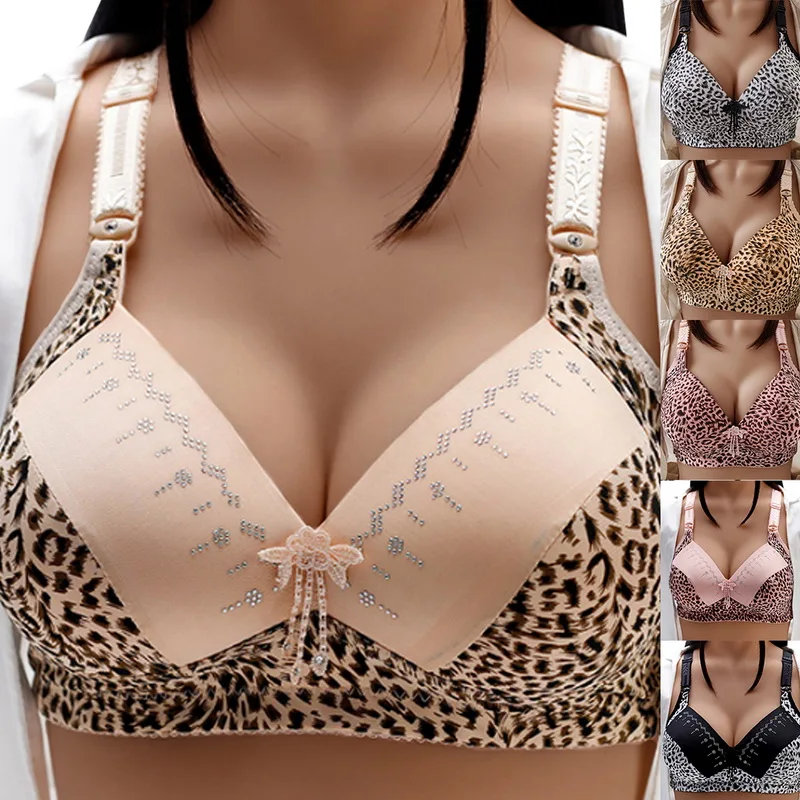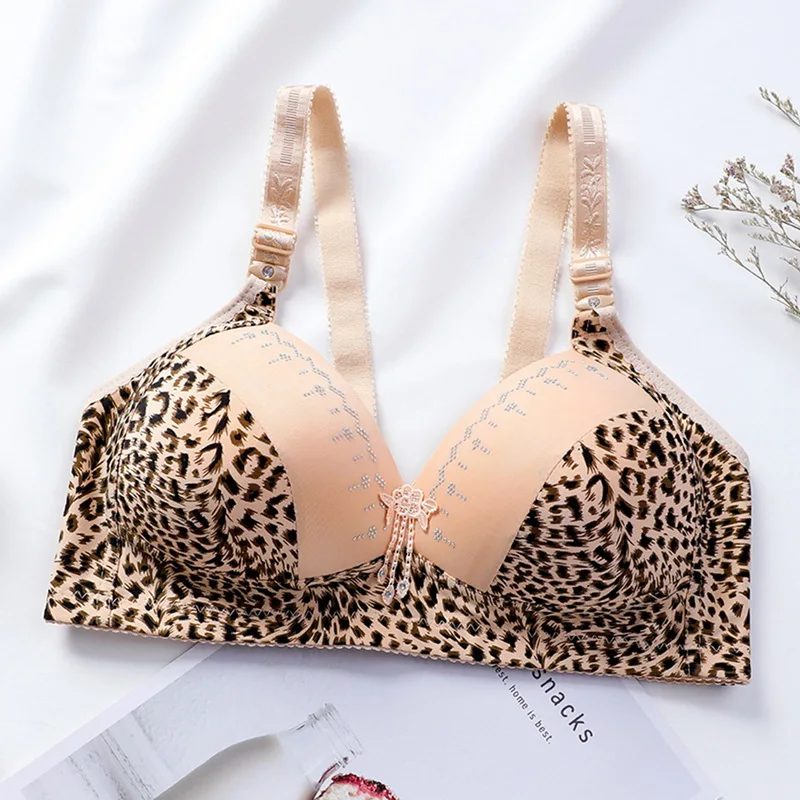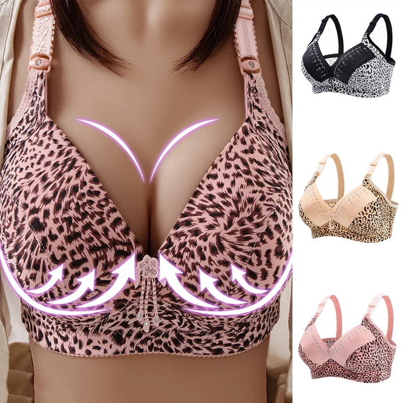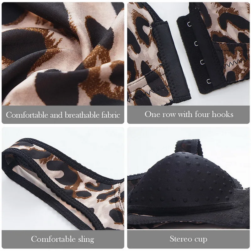 - Adjusted Plus Size Backless Bralette: Fashion Sexy leopard Push Up Bra Front Button