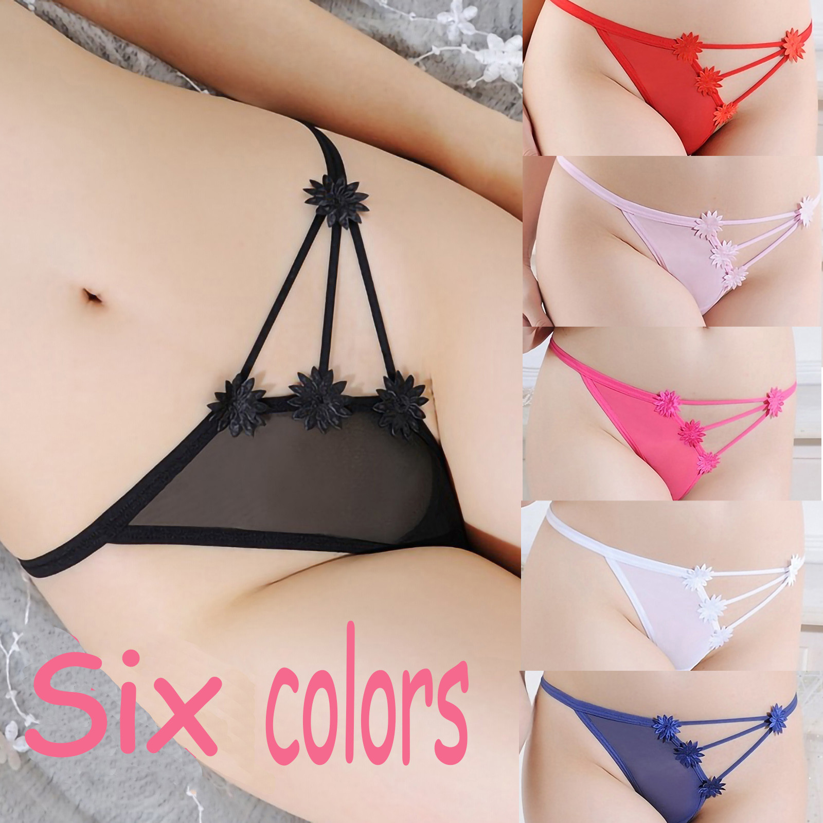 Women Sexy Ribbon Mesh Thong Pants Transparent Underwear Lace Sexy Underwear