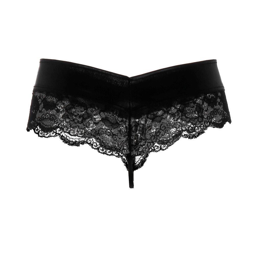 Hollow Lace Thongs Women Leather Patchwork Translucent Floral Low Waist G-strings Womens Sexy Exotic Panties Bielizna Damska