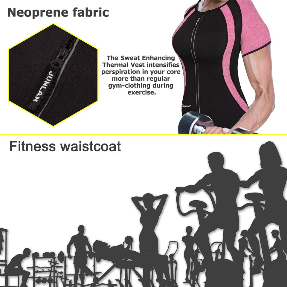 1. Junlan Slimming waistcoat with zipper, you can wear it more easily. T-shirt design covers more skin, helps you shape you body more comprehensive like arms and back. Neoprene material offers more sweating effect, makes you sweat times than usual while you doing exercise.