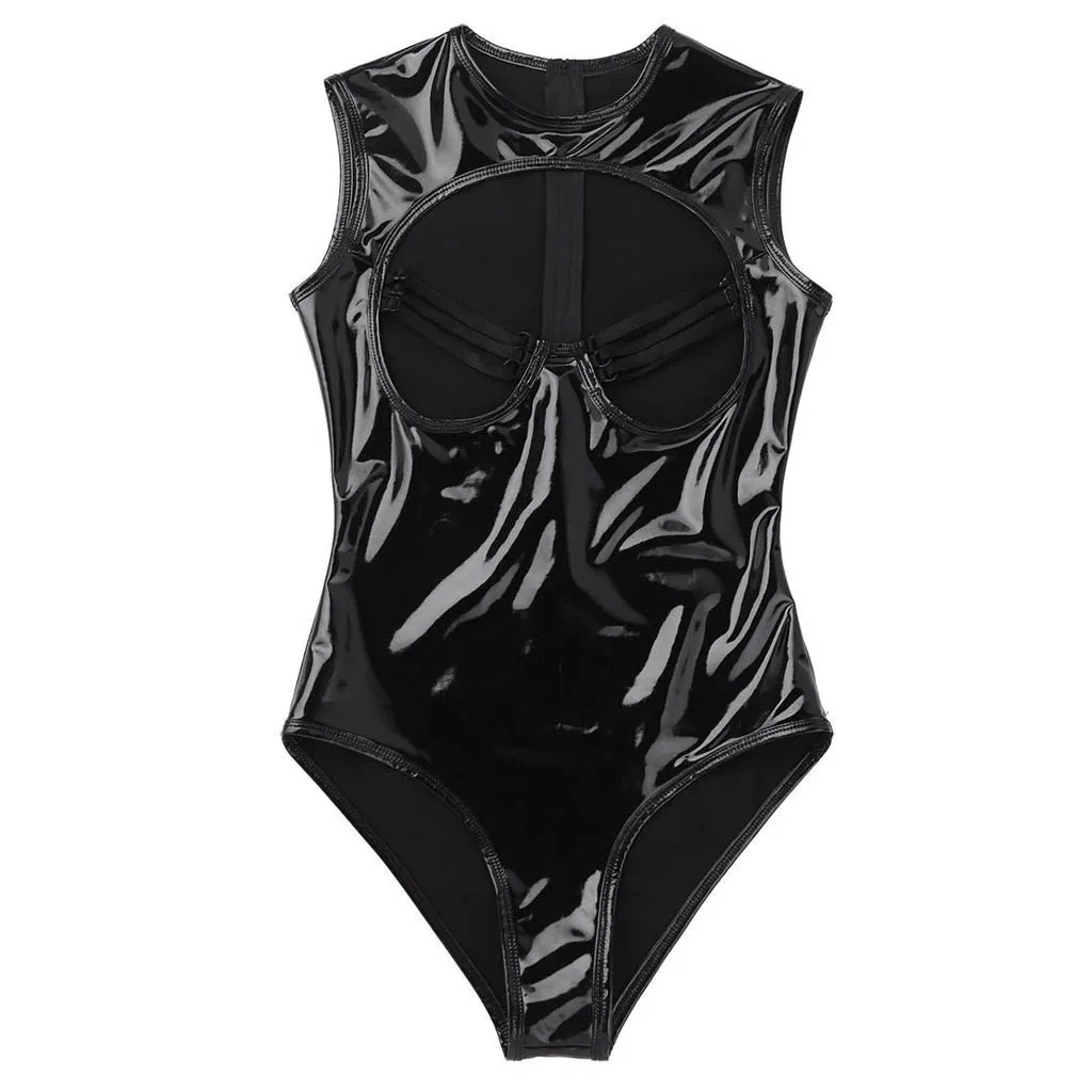 Leather Jumpsuit Teddy Underwear Hollow Out Lingerie Underwear Clubwear Bodysuit