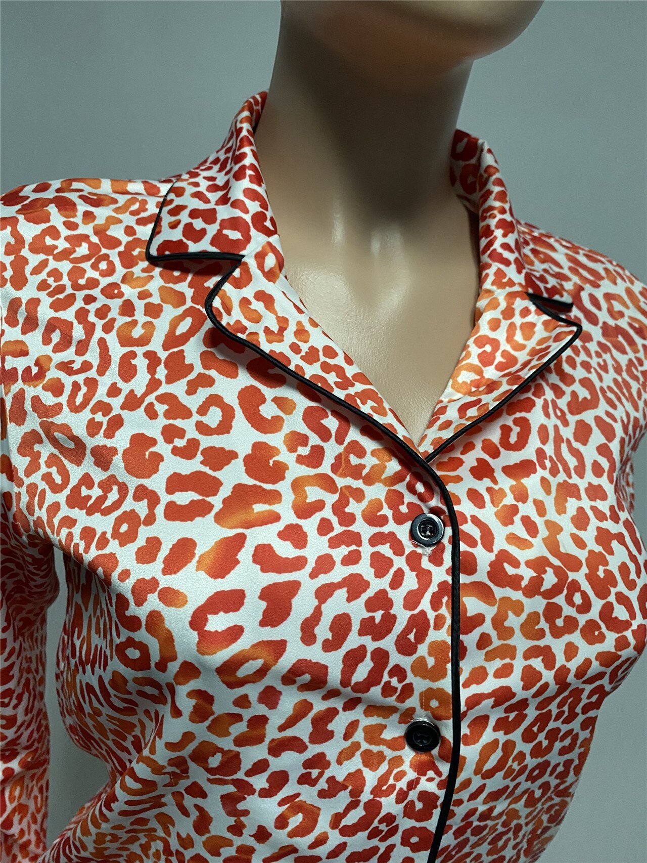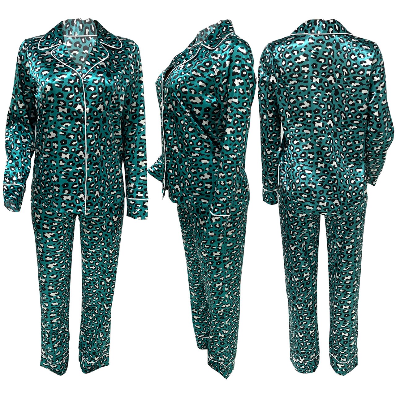Leopard Printed Two Pieces Pajama Sets Long Sleeve Sleepwear