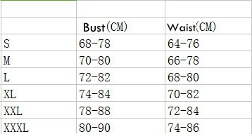 XXL Bust: 30.71-34.65      Waist: 28.35-33.07