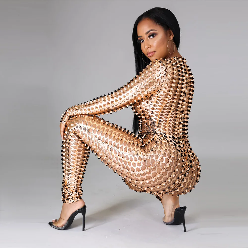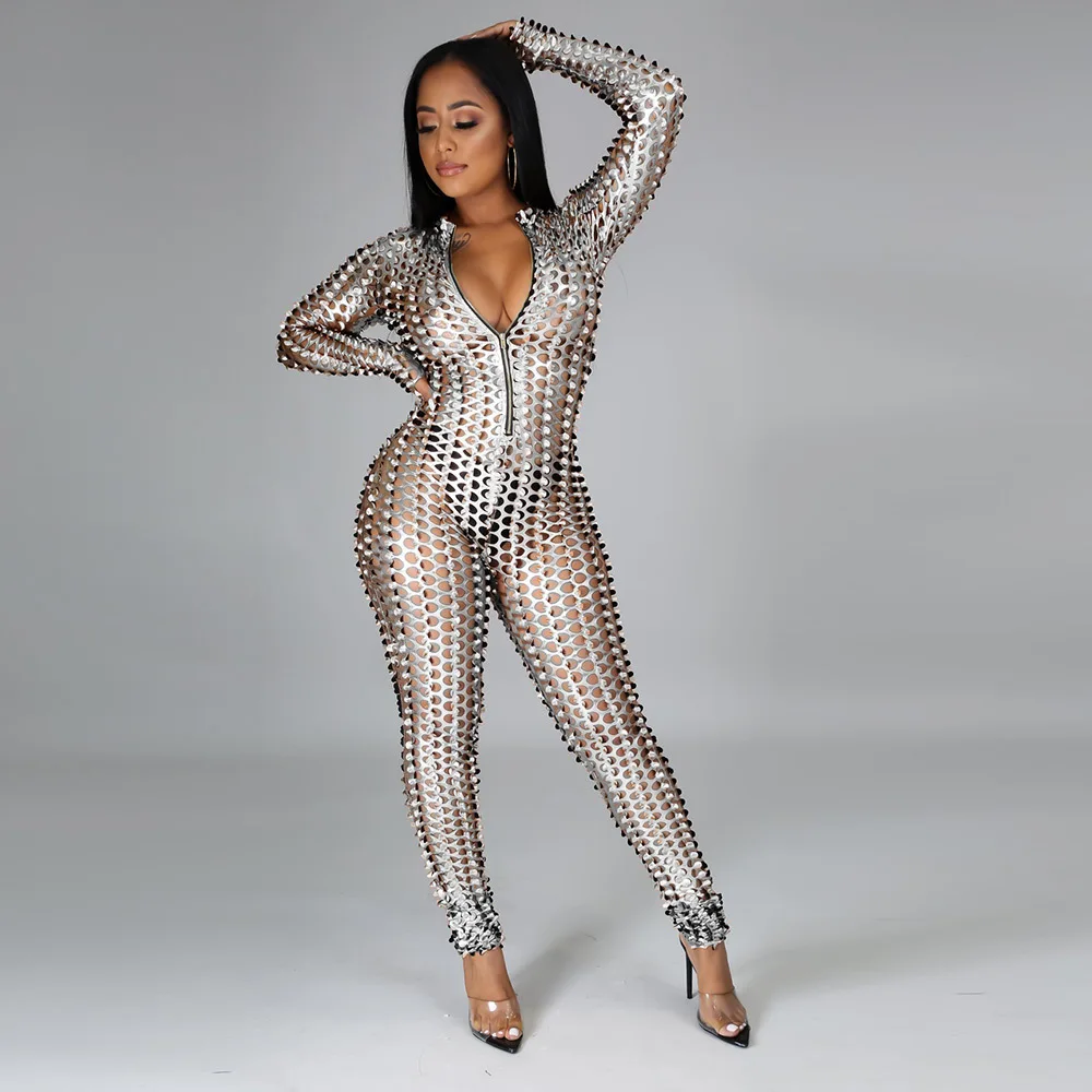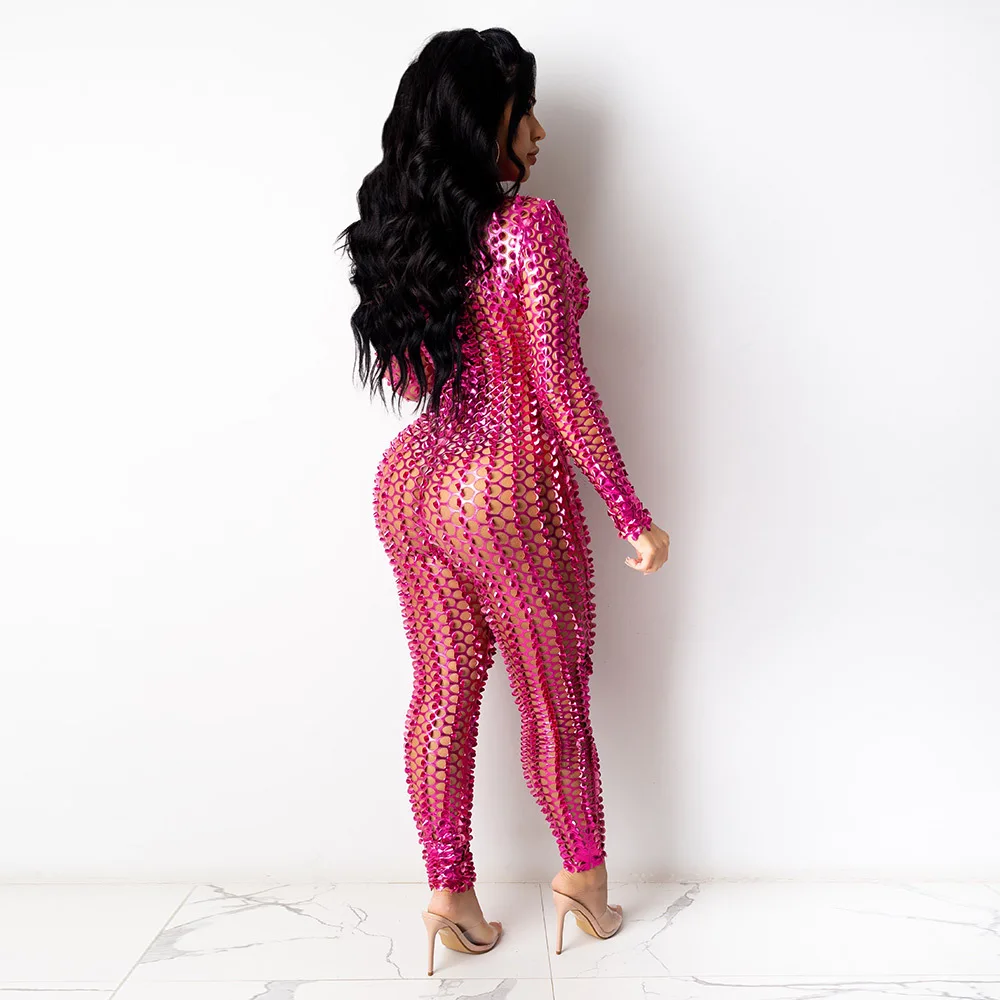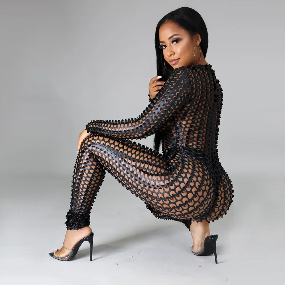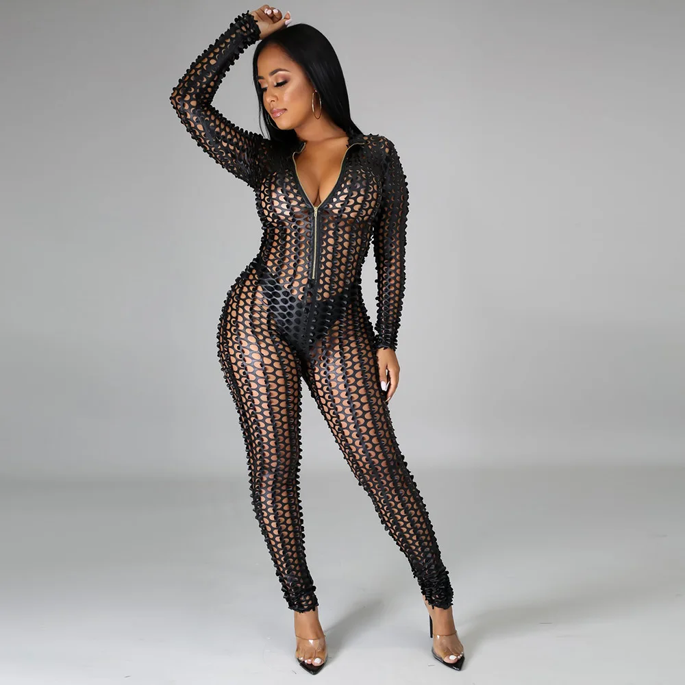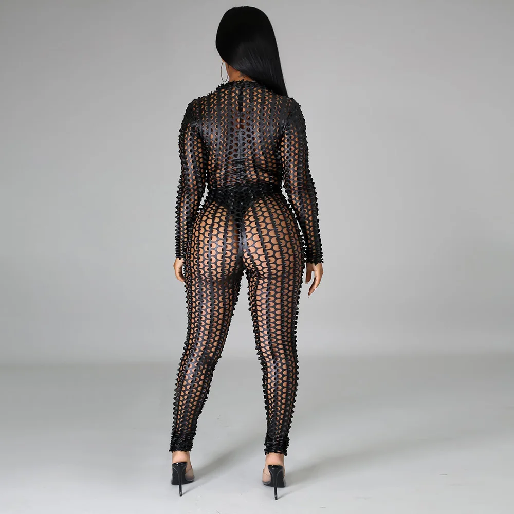 Sexy Hole Hollow Out Jumpsuit Women Casual Transparent Bodysuit Jumpsuit Overall Femlae Body Nightclub Club Party Clothing 2021