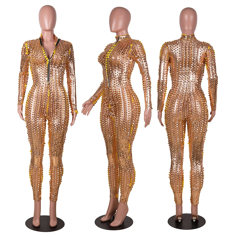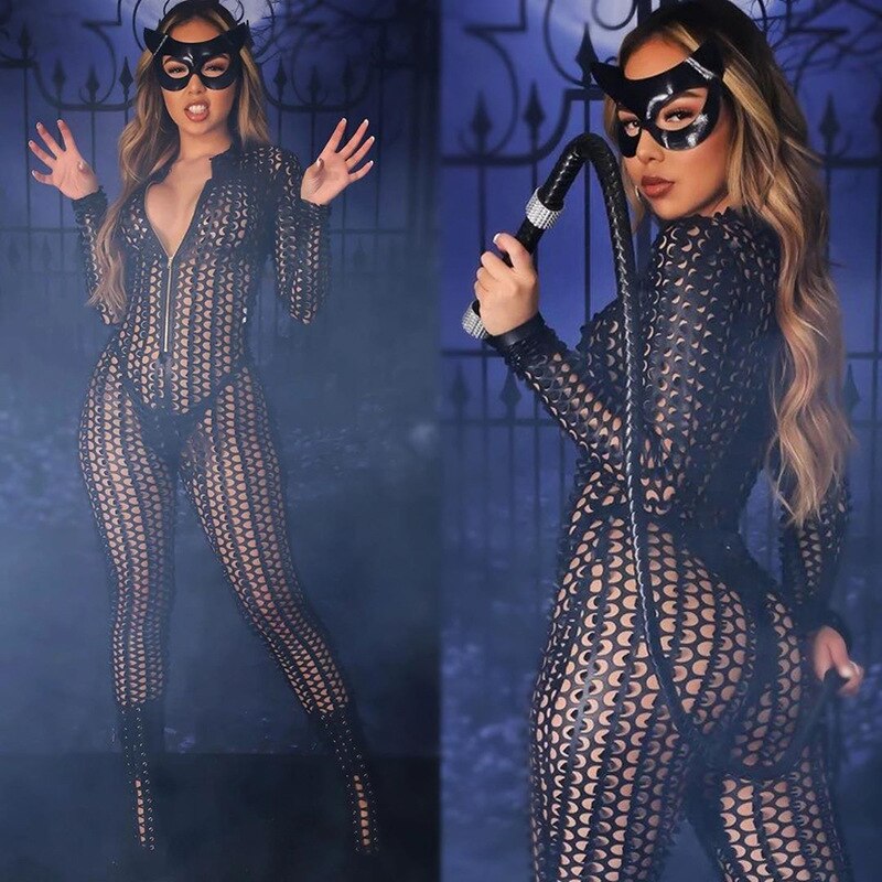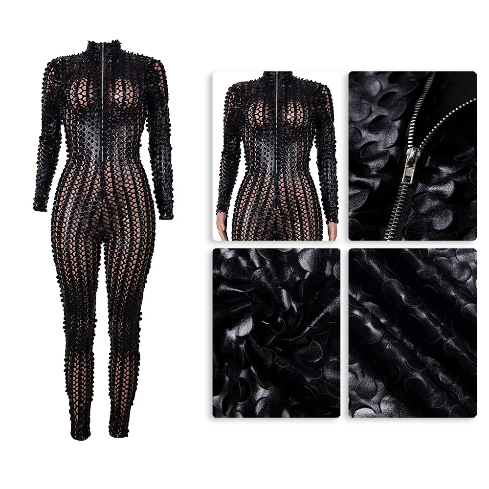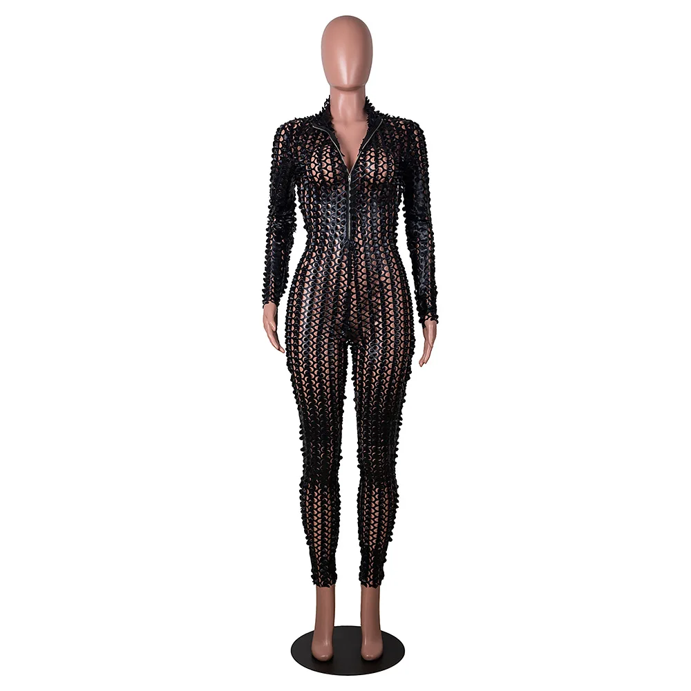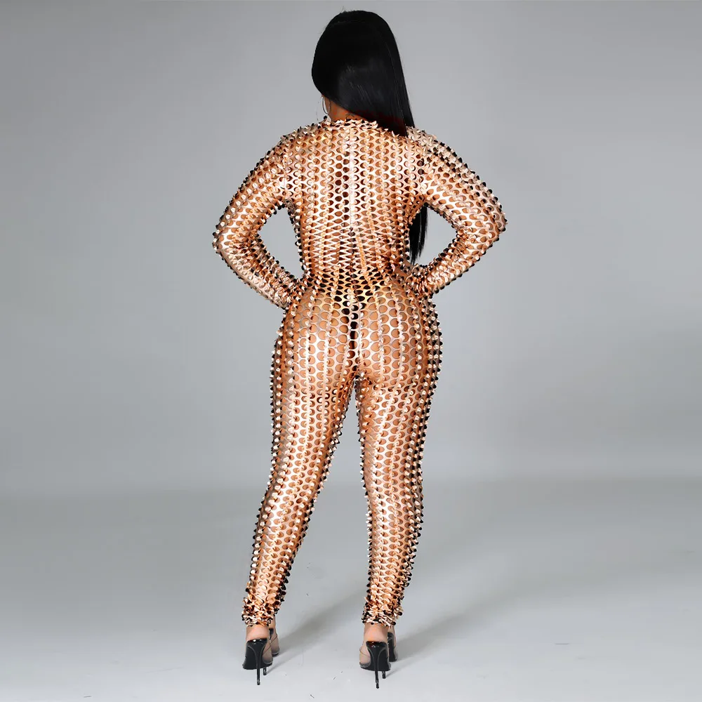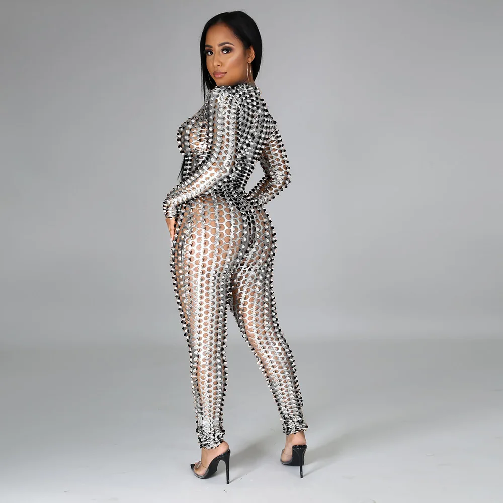 Sexy Hole Hollow Out Jumpsuit Women Casual Transparent Bodysuit Jumpsuit Overall Femlae Body Nightclub Club Party Clothing 2021