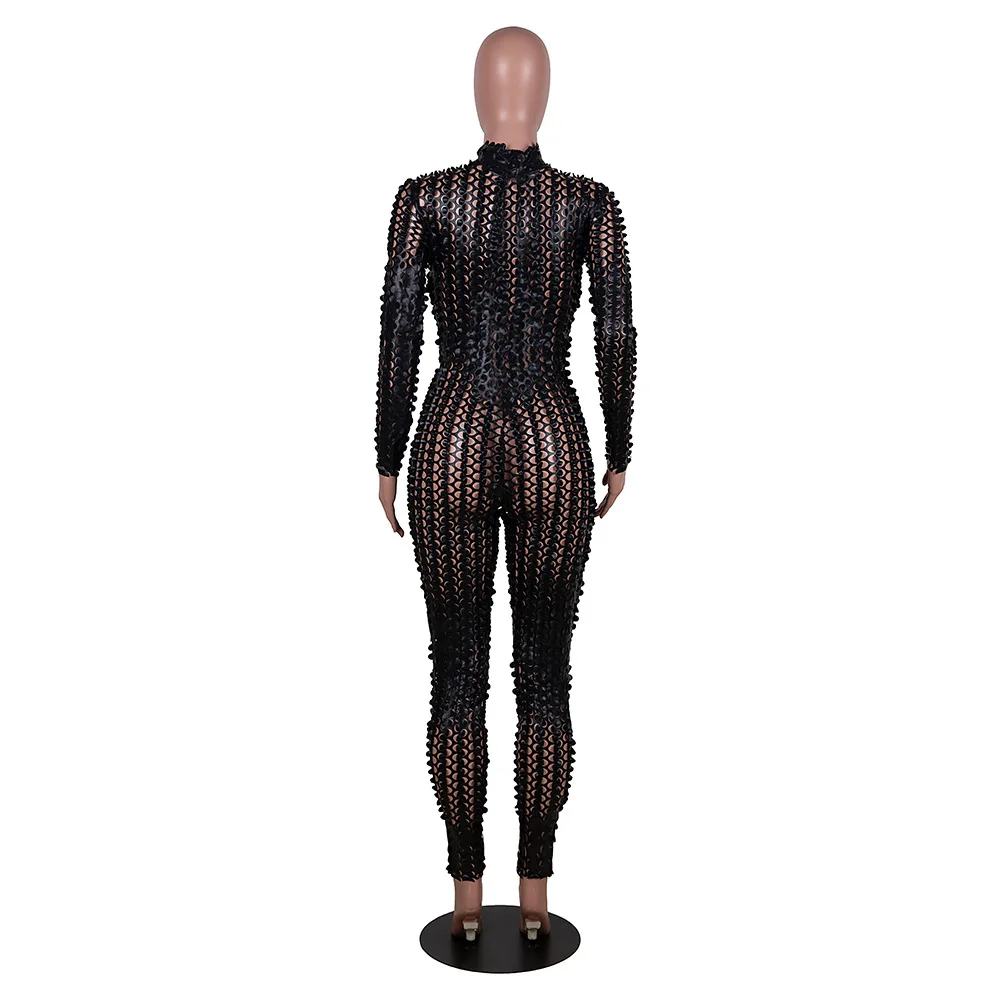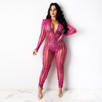 Sexy Hole Hollow Out Jumpsuit Women Casual Transparent Bodysuit