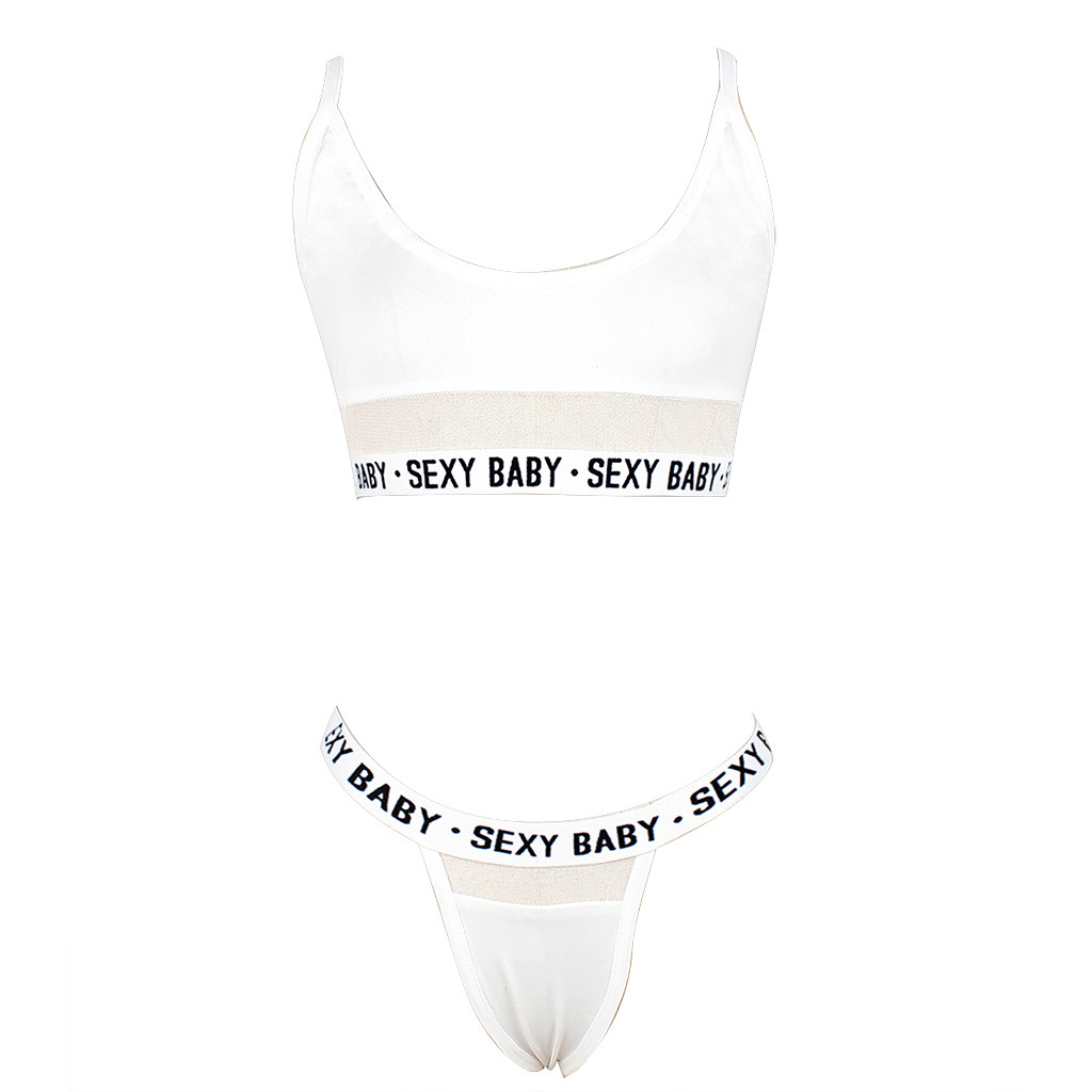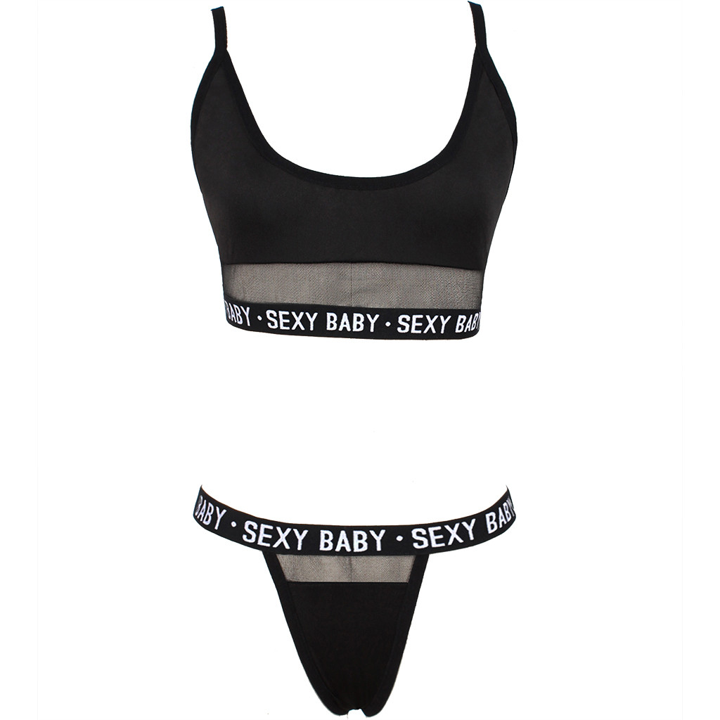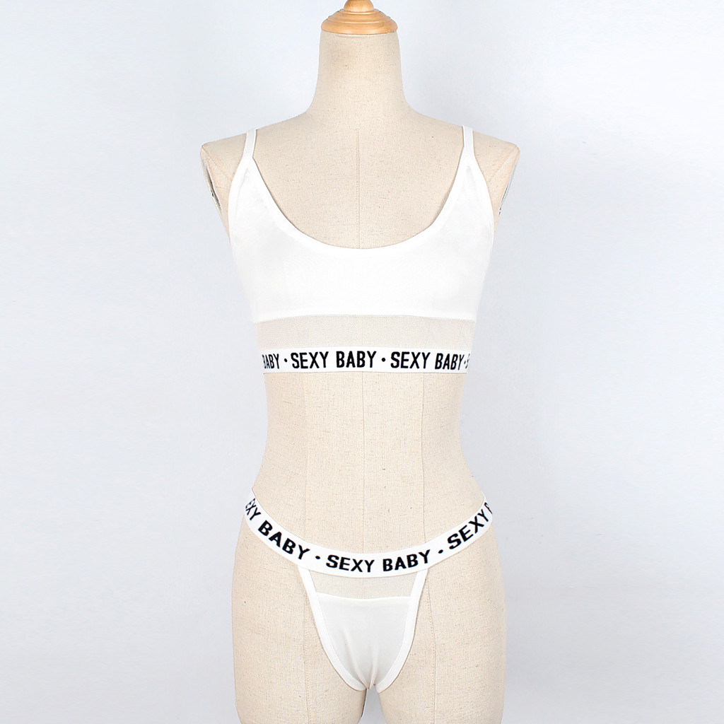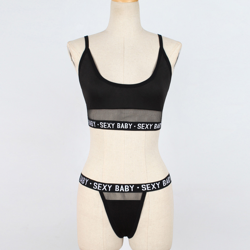 Fashion Women Letter Solid Patchwork Sexy Lingerie Underwear G-String Set
