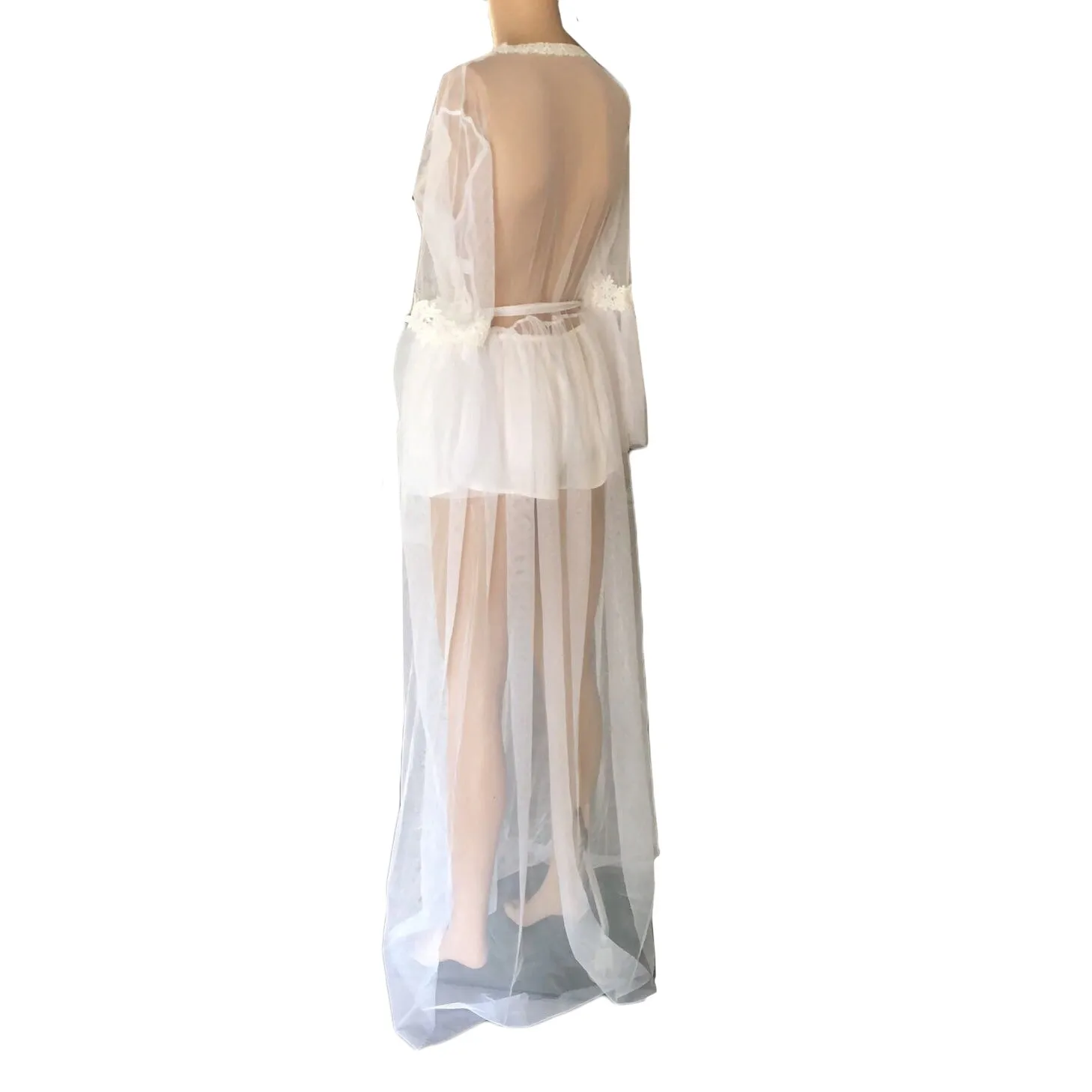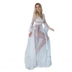 Sexy Women Underwear White Lingerie Long Sleeve Pajamas Long Skirt Bikini Blouse