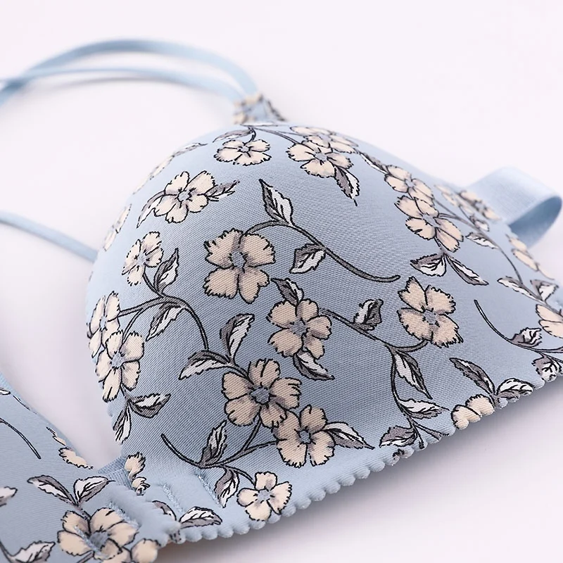 1. Exquisite floral print bra, cross straps, beautiful back design