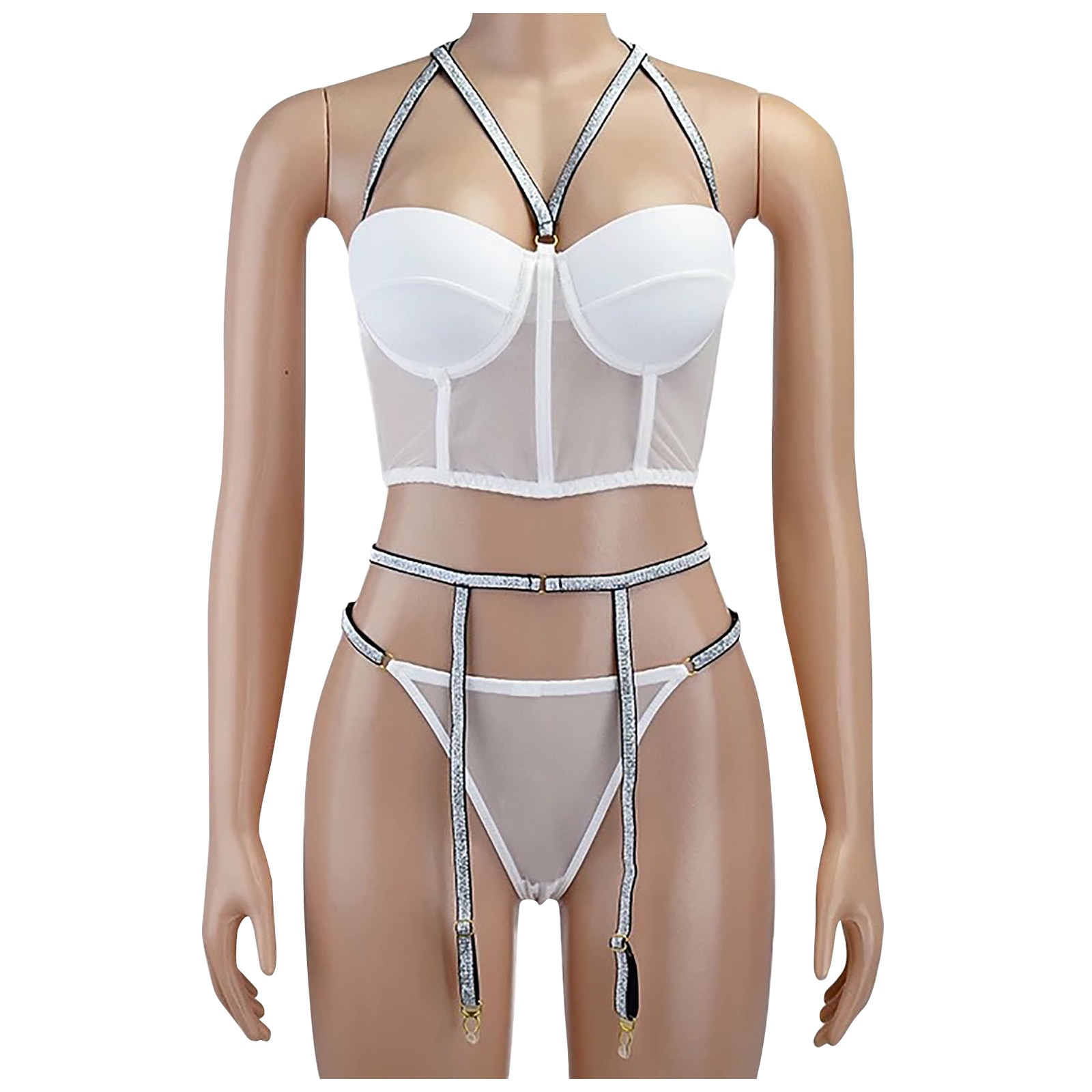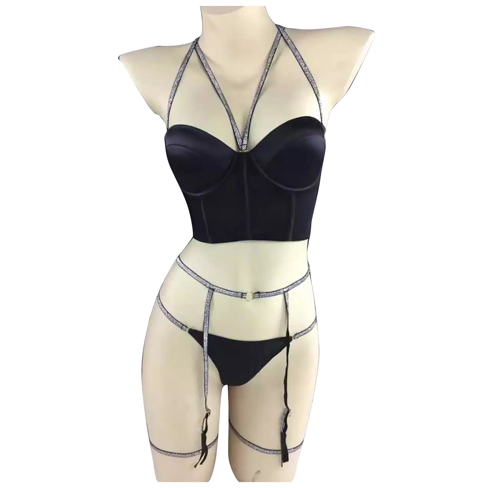 Sexy Women Lingerie Set Flashing Diamond Sequin Glitter Exotic Underwear Strappy Bra Panties Garter 3PCS Sets Bielizna Erotyczna