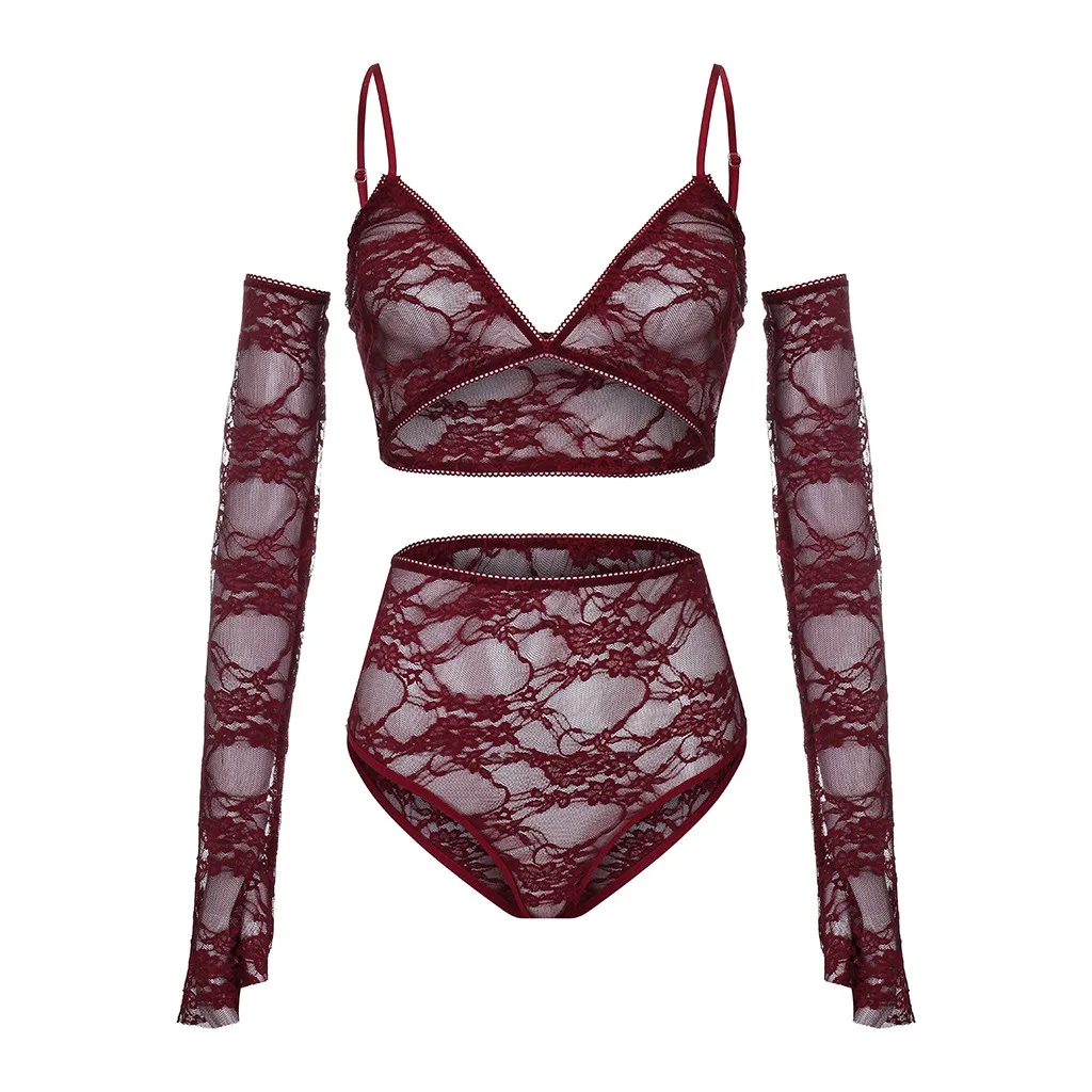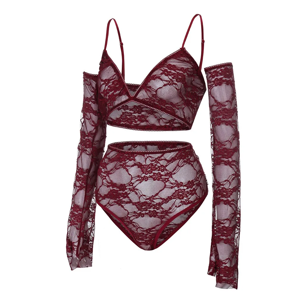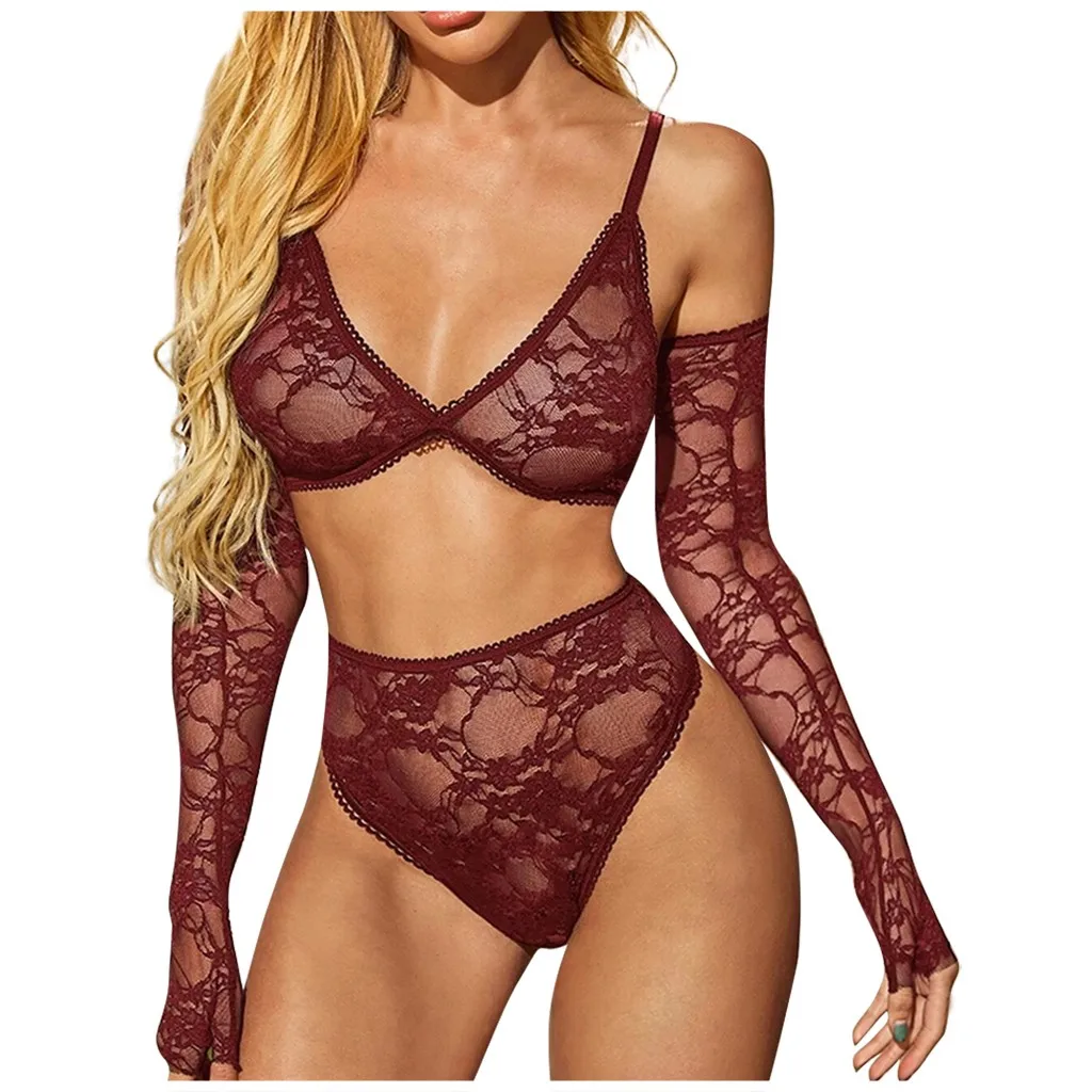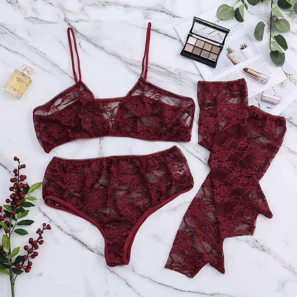 Women Bra Brief Sets Hand Socks Lace Lingerie Underwear