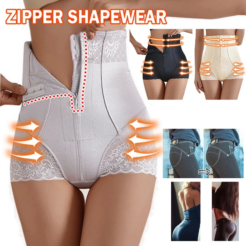 Women High Waist Trainer Body Zip Shaper Panties Tummy Belly