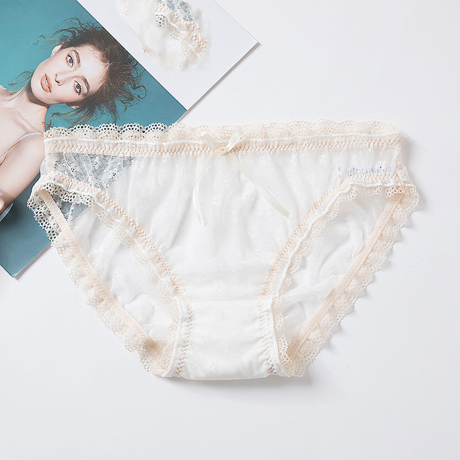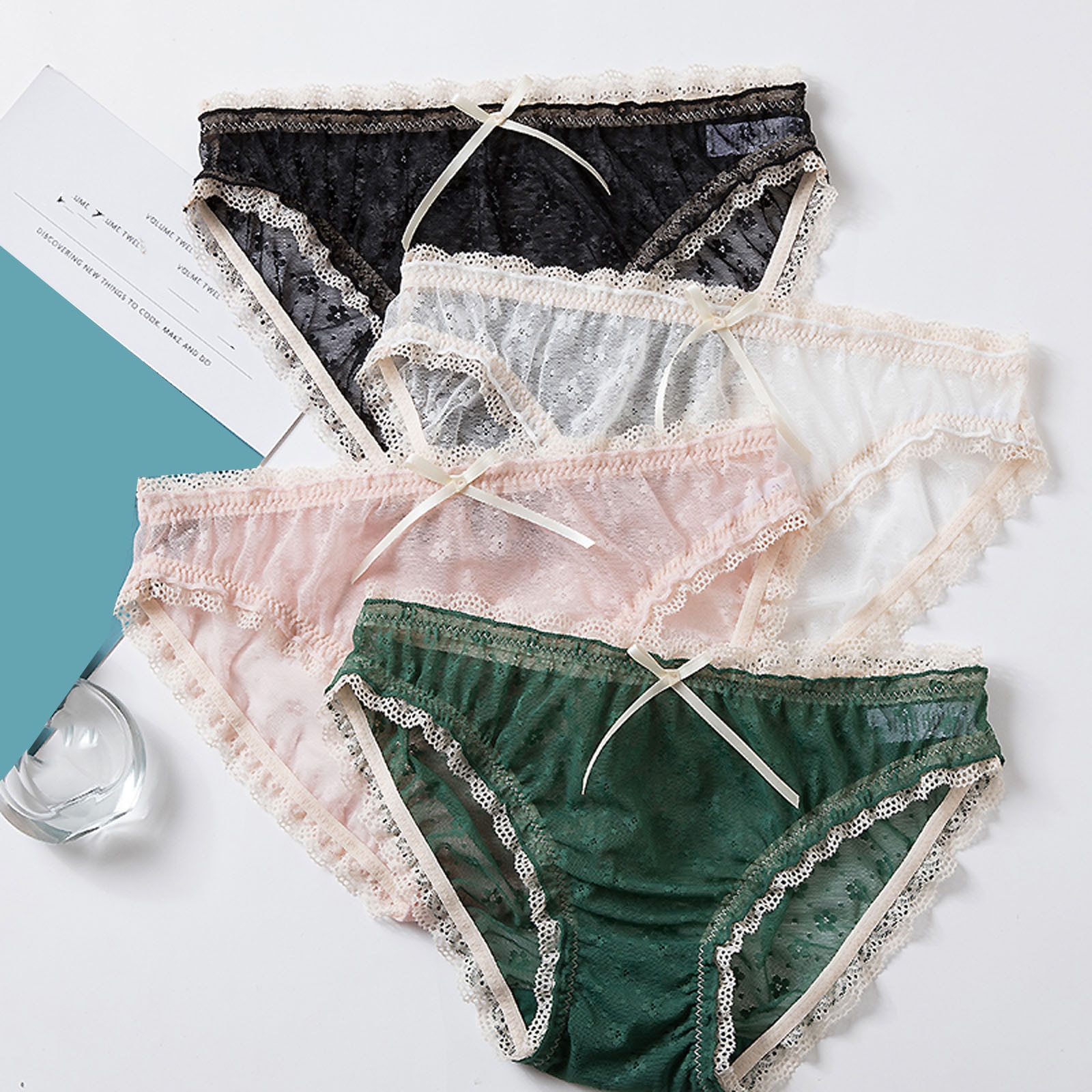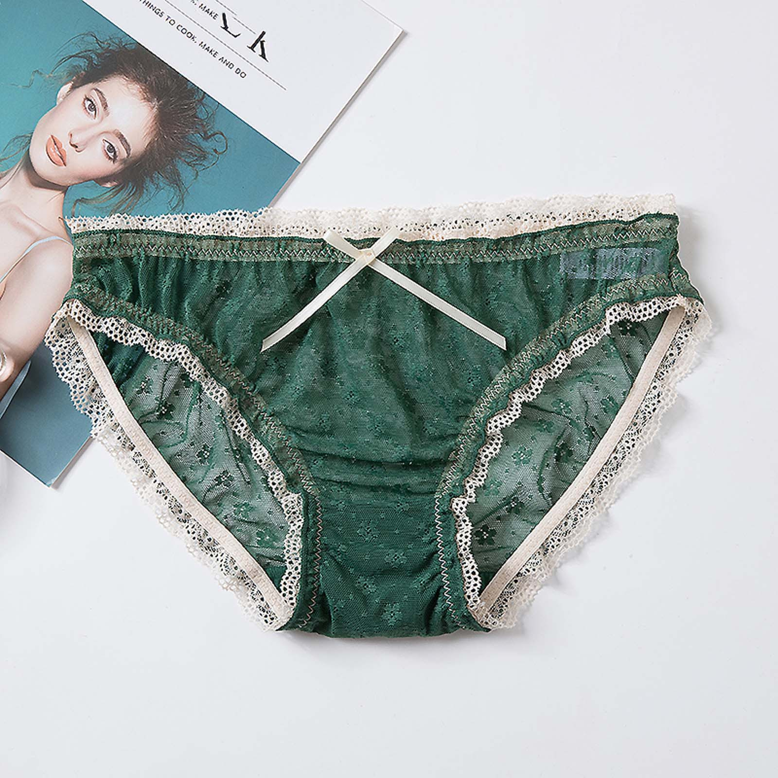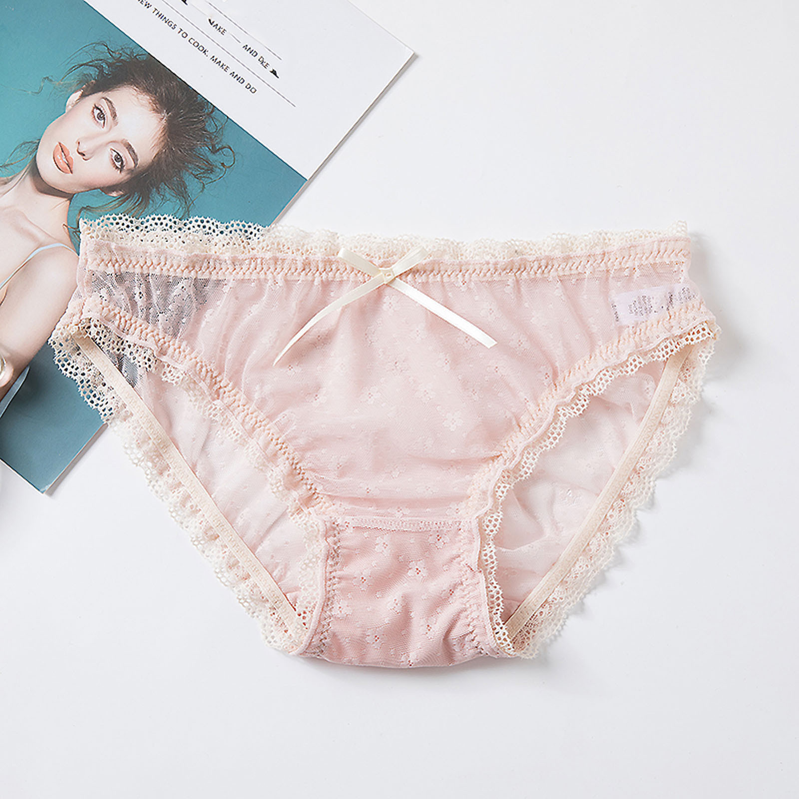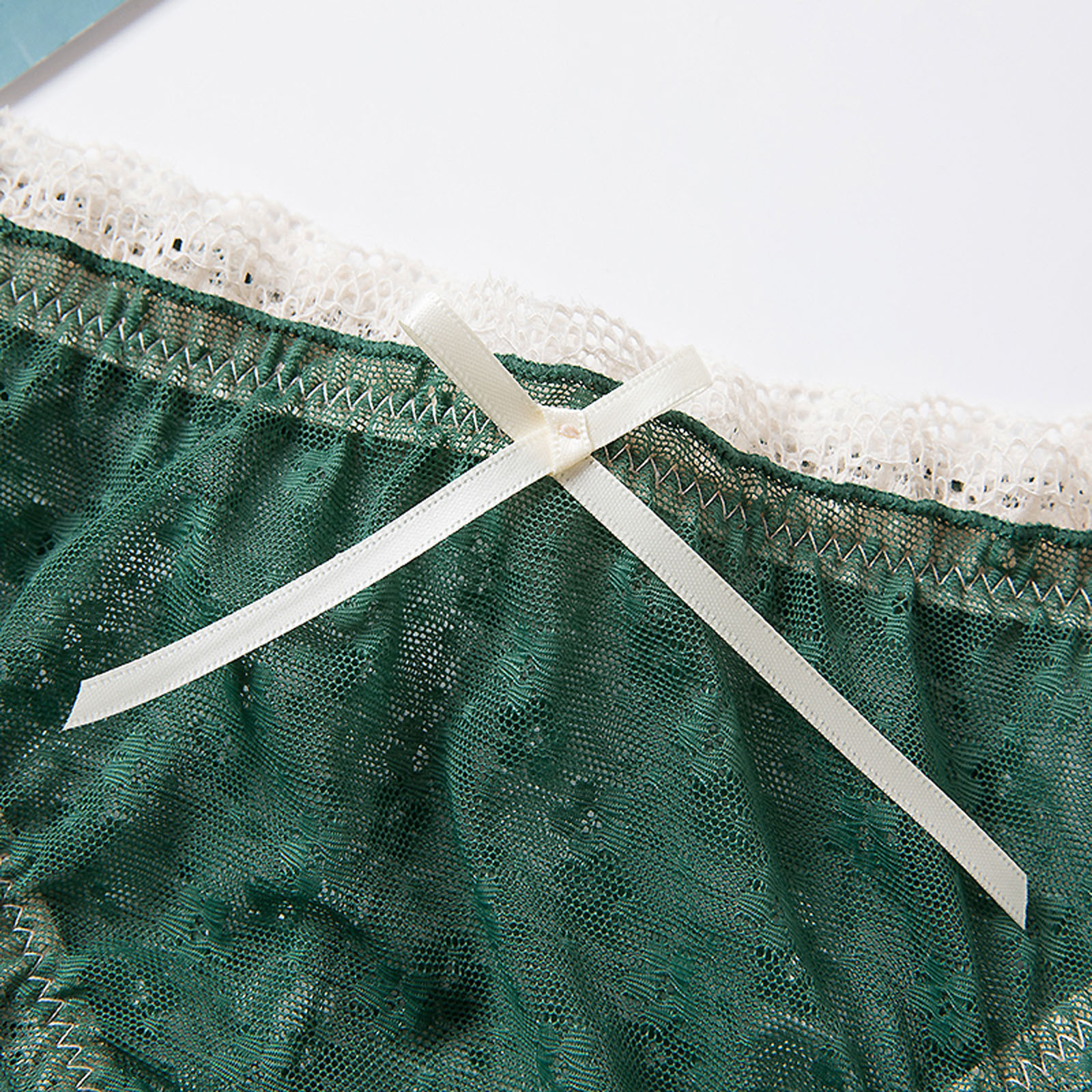 Women Plus Size Sexy Lace Hollow Bowknot Low Waist Briefs Panties Underwear