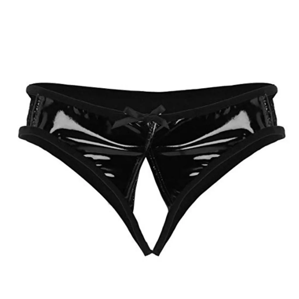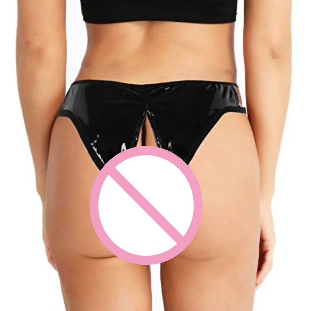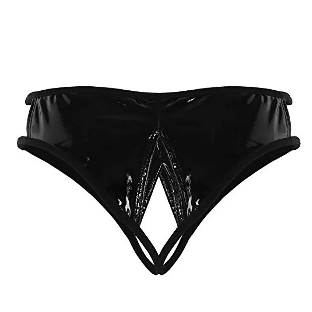 - Briefs: Metallic Leather Sexy Panties Plus Size