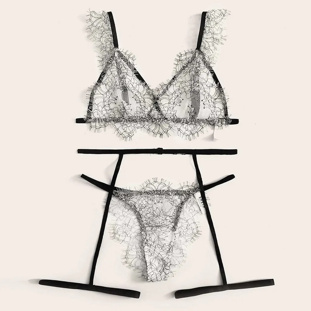 Women’s Sexy Bra Set Eyelash Floral Lace Lingerie